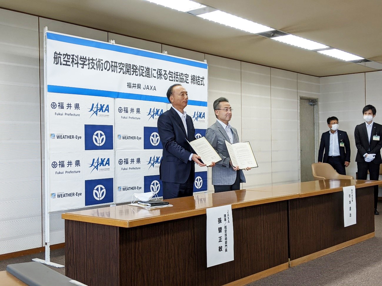 WEATHER-Eyeコンソーシアムメンバーの福井県と国立研究開発法人宇宙航空研究開発機構は、航空科学技術分野において、福井県特有の環境や産業技術を活かした研究開発を推進し、研究成果の実用化に向けた連携、イノベーション創出機会の増大等を目的とし、包括協定を締結しました。