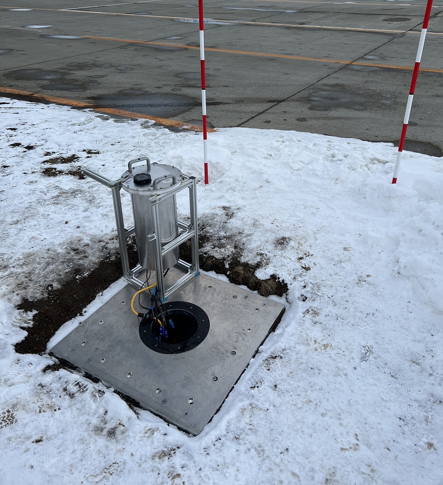 北海道エアポート(株)、日本工営(株)の協力を得て、2022年2月より新千歳空港の滑走路近傍にて積雪状況をリアルタイムでモニタリングする実証実験を開始し、2023年2月まで実施予定です。